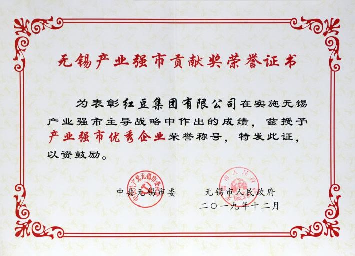 12月20日,無錫市政府召開無錫市產(chǎn)業(yè)強市貢獻獎、科技創(chuàng)新貢獻獎頒獎大會。會上,紅豆集團榮獲“產(chǎn)業(yè)強市優(yōu)秀企業(yè)”稱號,紅豆集團董事局主席兼CEO周海江出席會議并接受頒獎。此次獲獎是對紅豆集團在推動“強富美高”新無錫建設(shè)中所作貢獻的肯定。