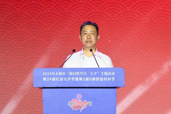 無錫市委宣傳部常務副部長蔡文煜在致辭中表示,過去二十多年里,紅豆集團始終堅持以傳統文化為寄托,以七夕節為契機,通過詩歌朗誦會、七夕節民俗論壇、尋找當代“王維”、感動中國的愛情故事征集等多種形式的活動,將弘揚中國傳統文化落到實處。紅豆集團連續24年舉辦的“紅豆七夕節”,不僅是紅豆企業品牌建設,充分挖掘七夕文化內涵的具體行動,更是紅豆學習貫徹落實習近平文化思想,持續推進中國傳統節日振興,推動中華優秀傳統文化傳承發展的具體實踐。